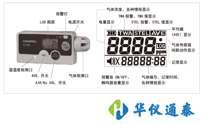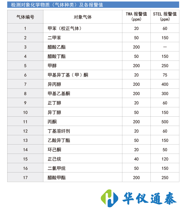 報警設定值:TWA報警:8小時暴露界限值;STEL報警:短時間(15分鐘)暴露界限值