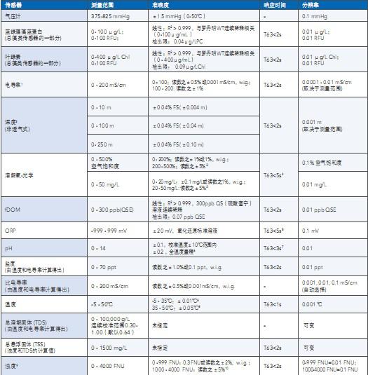 * 技術規格為本儀器在典型應用條件下的性能表現并不包括未來可能的變更。請登錄 EXOwater.com以獲取較新的技術參數信息