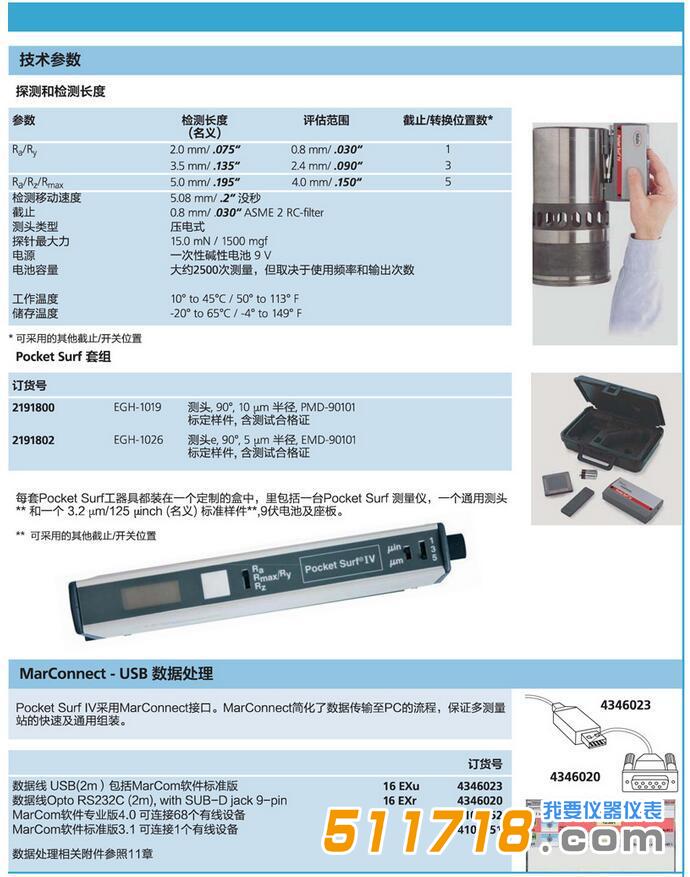 德國MarSurf PocketSurf IV 曲軸粗糙度檢測儀技術參數: