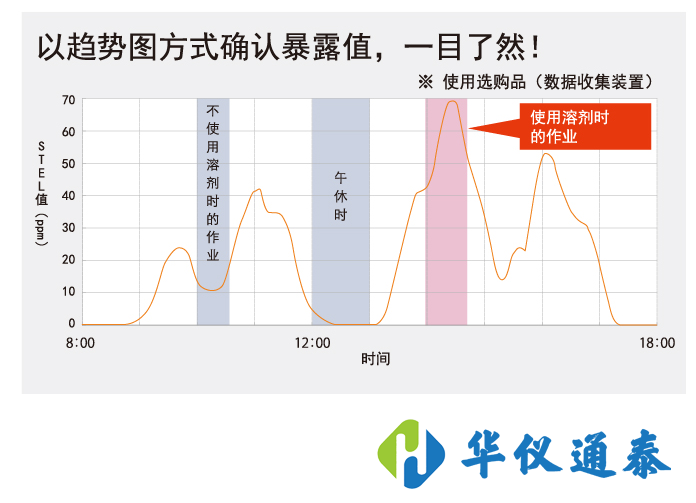 可以實時確認化學物質在空氣中的濃度【瞬時值、平均值、 TWA值(時間加權平均值)、STEL值(短時間暴露值)】