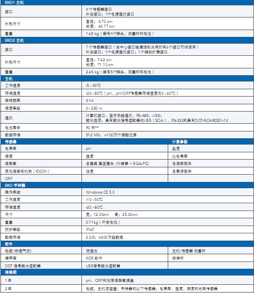 * 技術規格為本儀器在典型應用條件下的性能表現并不包括未來可能的變更。請登錄 EXOwater.com以獲取較新的技術參數信息