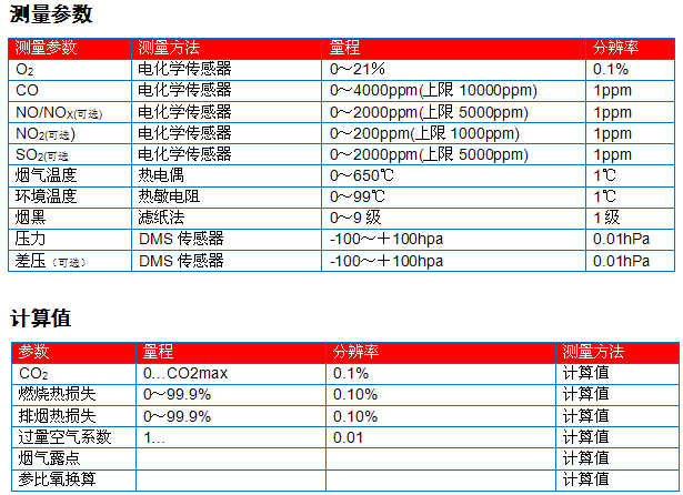 德國RBR ecom-CN手持式煙氣分析儀測量參數: